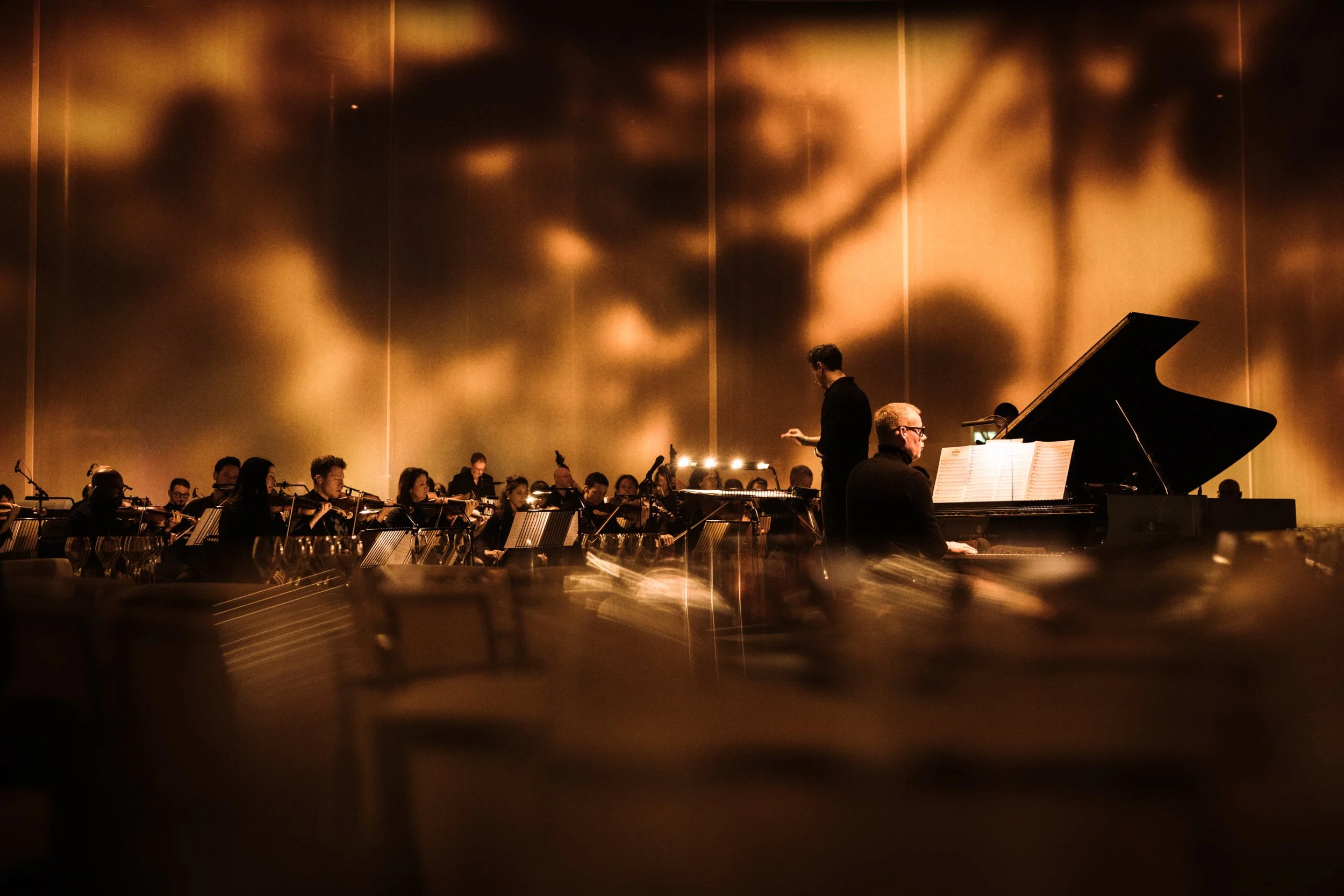 The programme evolved from an intimate piano trio, through a medium ensemble, to a full orchestra, accompanying a tasting of Krug Clos d’Ambonnay 2008, Krug 2008, and Krug Grande Cuvée 164ème Édition for an invited audience.
